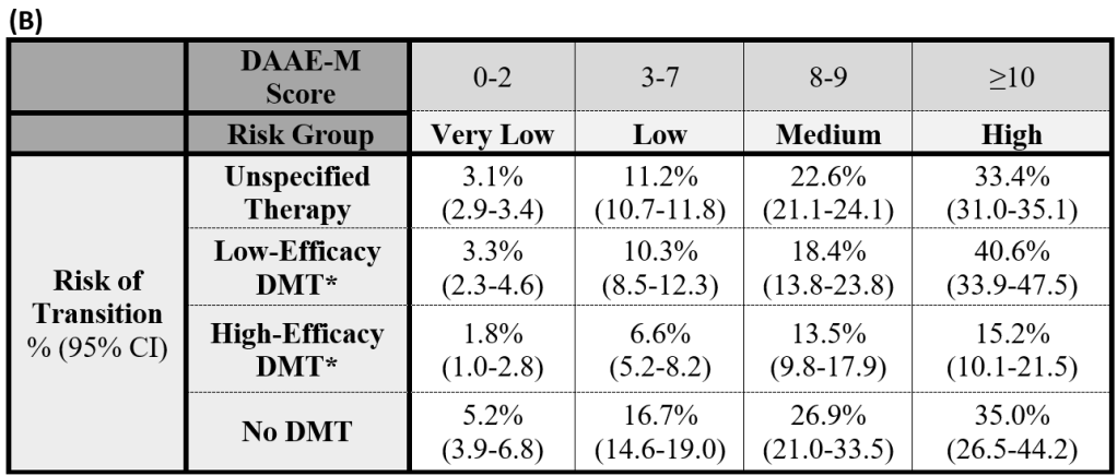 *DMT is presumed to be used over the majority (>50%) of the five-year period. Unspecified therapy relates to estimated risks without accounting for DMT.